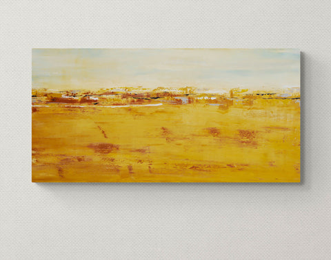 This abstract painting is inspired by a photograph I took of a desert landscape. As a photographer, I spend hours in the environment, observing the light, colours, and textures before capturing the scene. I then use the photograph as a reference to create this piece, translating the warmth, stillness, and open space of the desert into abstract forms and layered tones.