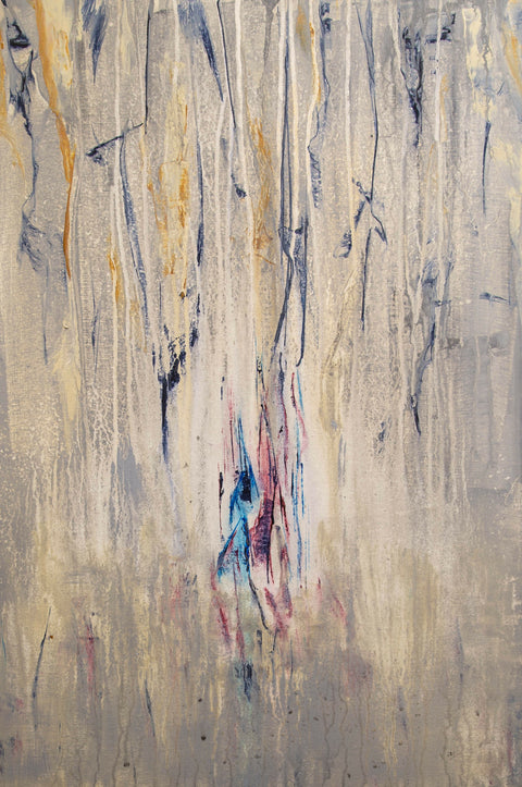 This abstract painting is based on a photograph I took of a couple walking towards me across a bridge, with mountains in the background. I drew from the shapes, colours, and atmosphere of the scene to create an abstract interpretation. The piece focuses on the sense of movement, togetherness, and the natural setting, translated through simplified forms and expressive marks.