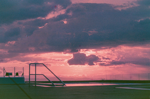 As the age of the film I used is over 20 years old the aging process of the film is what created the incredible, heavy grain and shifted the natural twilight colours into deep magentas, vibrant pinks, and moody teals.